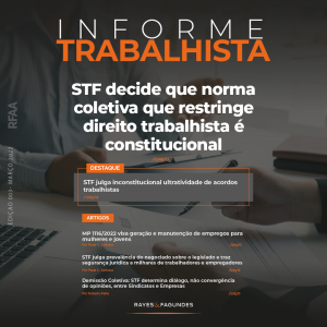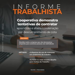 Nesta edição do Informe Trabalhista destacamos importantes decisões proferidas pelos Tribunais do Trabalho no mês de abril/2022, envolvendo assuntos relacionados